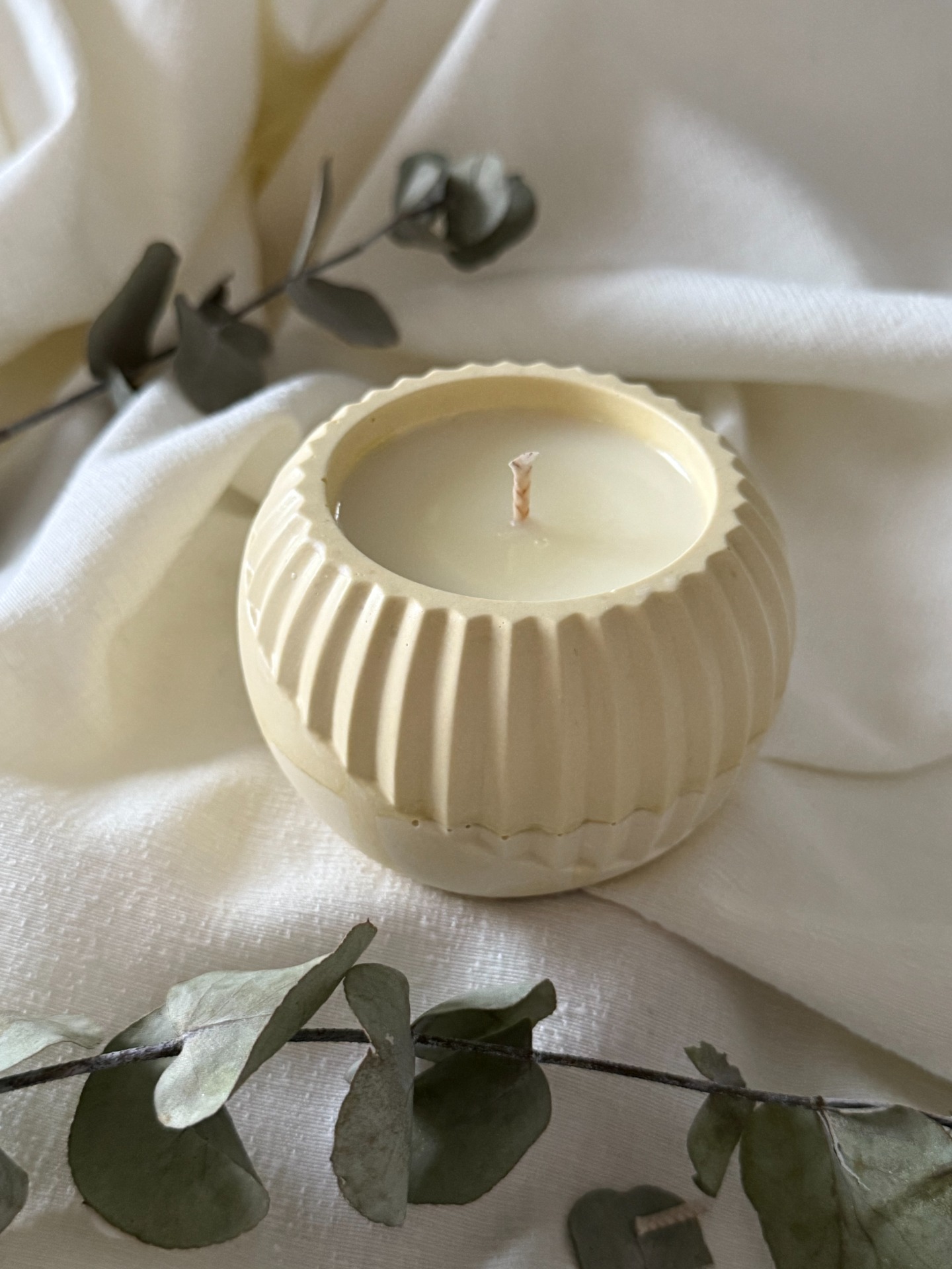 Tato kulatá dóza vznikla jako tichý jarní kousek. Jednoduchá, měkká na pohled, s jemnou strukturou, která vynikne v přirozeném světle. Každá dóza je ručně odlévaná z jesmonitu, následně plněná 100% sojovým voskem. Po dohoření svíčky zůstává dóza dál – jako malá miska, šperkovnice nebo dekorace, která najde své místo v interiéru. Je to svíčka pro chvíle, kdy nechceš nic složitého.