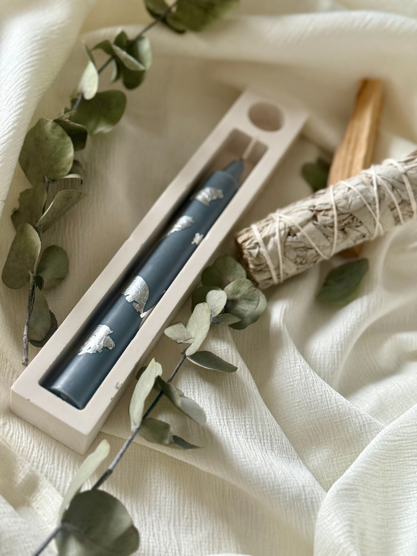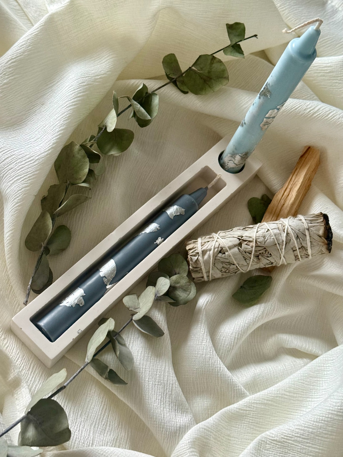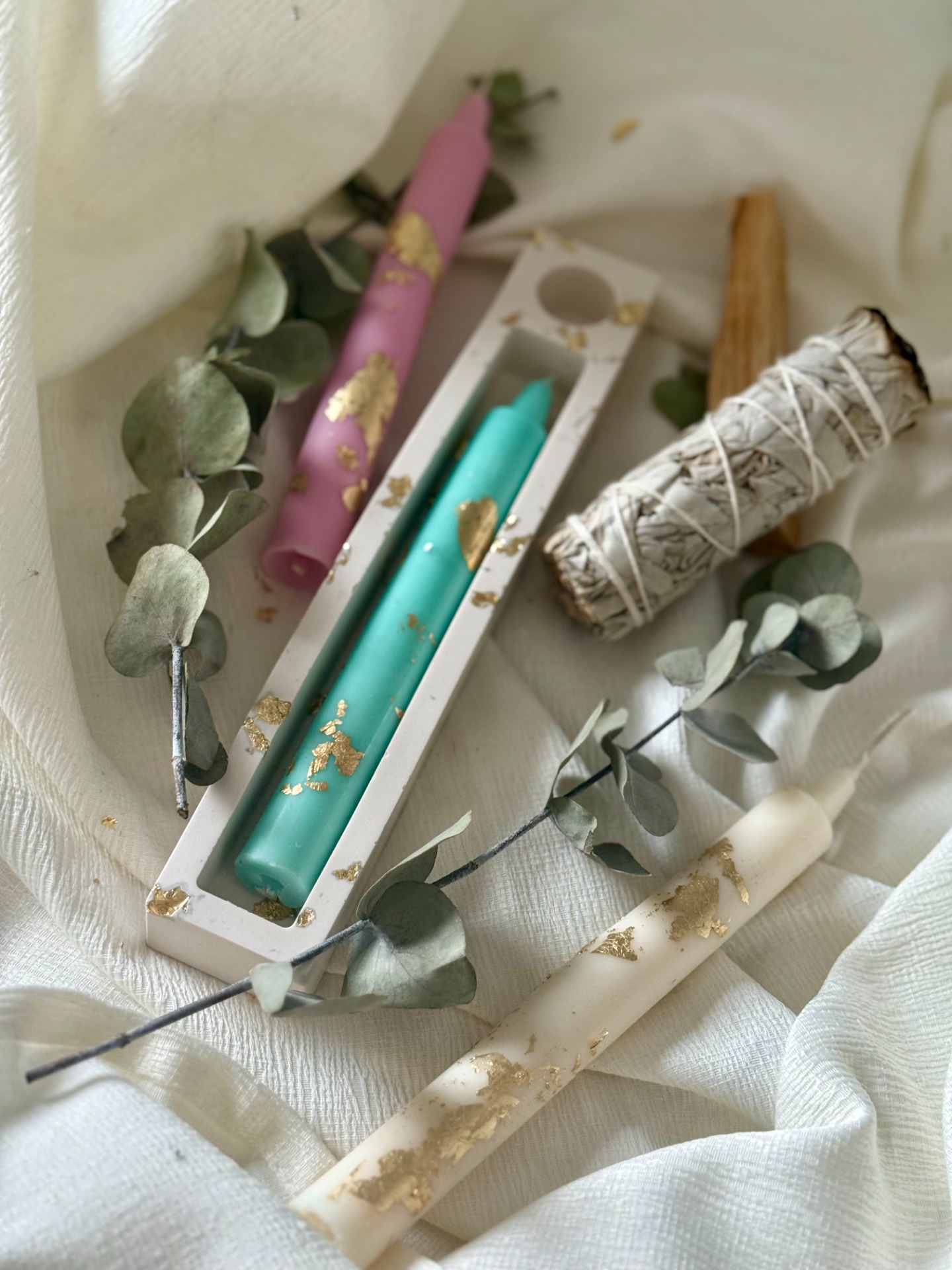 - dlouhá ručně vyráběná rituální svíčka ze sójového vosku