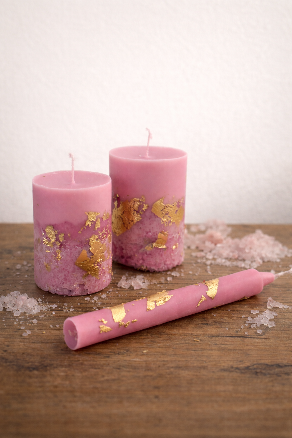 Tato solná rituální svíčka je pozvánkou k laskavosti. K sobě. Ke svému tělu. Ke svým pocitům. Růžová barva je spojená se sebeláskou, něhou a přijetím V kombinaci se solí vytváří jemný, ale hluboký prostor, kde můžeš zpomalit a být k sobě mírná. Nejde o to se měnit. Jde o to se přijmout.